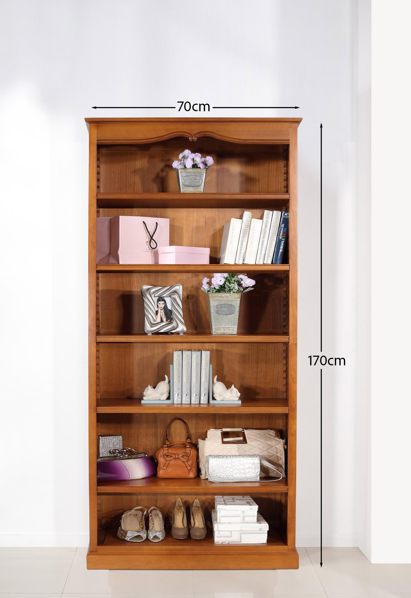 Bibliothèque réalisée en merisier massif d'inspiration Louis XV, A l'intérieur se trouvent 5 étagères montées sur crémaillères en bois, Fabrication traditionnelle, Sa finition est un merisier teinté Noyer clair, N'hésitez pas à demander nos échantillons de bois !