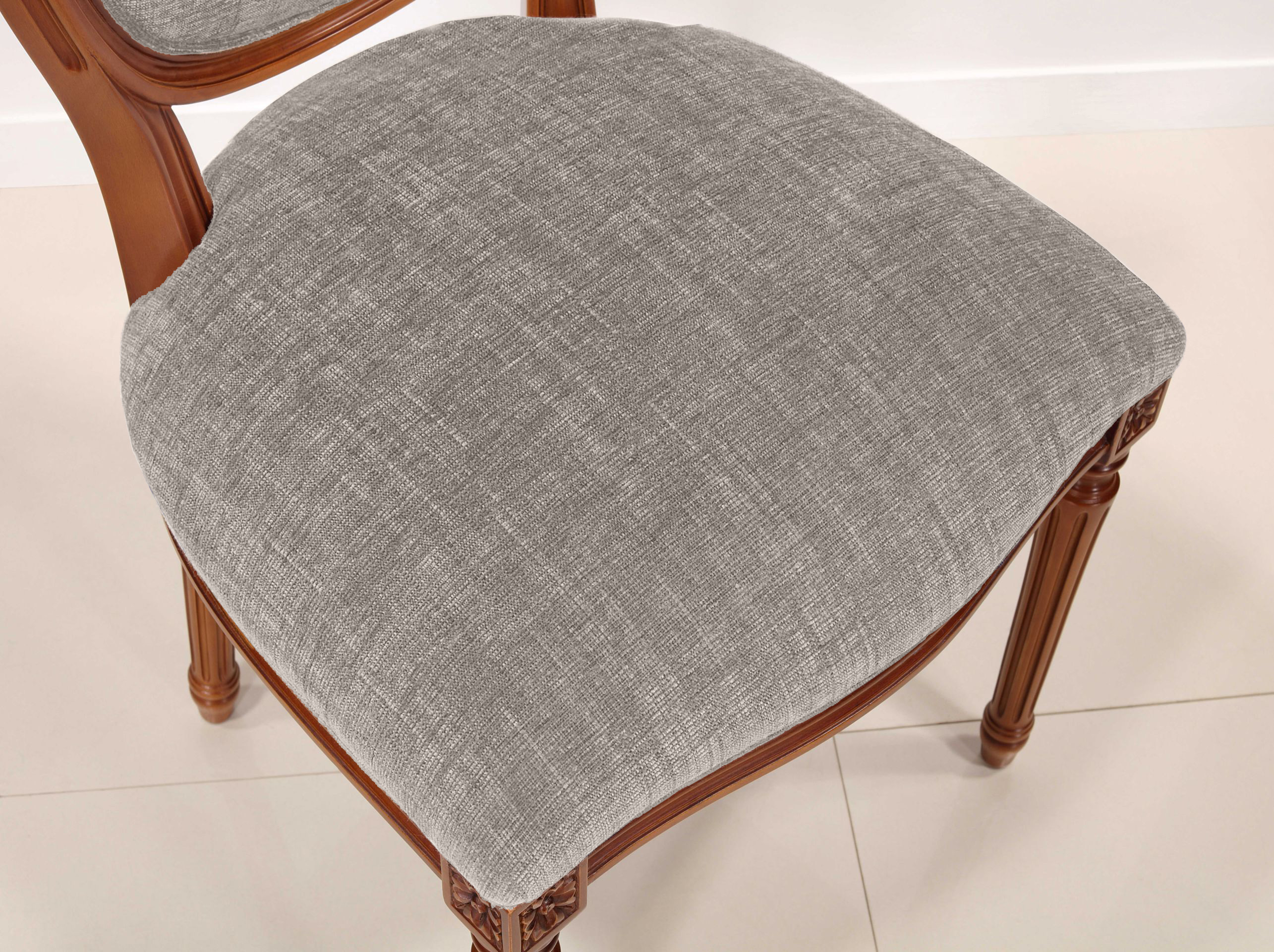 Chaise Emeline – L’élégance du style Louis XVI, la noblesse du merisier massif Fabriquée avec passion dans notre atelier, la chaise Emeline incarne lÂ’authenticité du style Louis XVI tout en offrant un confort moderne. Sculptée à la main dans du merisier massif, elle est assemblée selon les règles de lÂ’art : tenons mortaises, tourillons pour le dossier, et équerres collées-vissées pour une solidité durable. Caractéristiques : Confection artisanale avec détails sculptés à la main Garnissage semi-traditionnel sur sangles élastiques et profilés agglomérés Confort optimisé grâce à une mousse haute résilience 36kg/m³ Finition merisier doré, cirée et lustrée (autres finitions sur demande) Revêtement : tissu dÂ’ameublement Boston ASH Demandez nos fichiers. 🎨 Besoin dÂ’un aperçu ? Demandez vos échantillons gratuits pour trouver la finition qui vous ressemble.